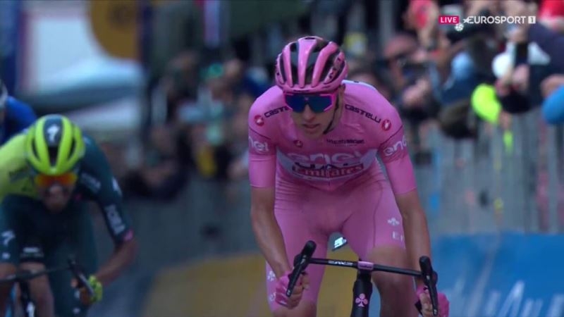 Но людям надо поставить себя на наше место. То, как он выступает — это следующий уровень. Это впечатляет. Но зрители не понимают, что иногда мы выглядим как клоуны. Конечно, мы следим за розовой майкой. Пока он не проявляет никакой слабости, смысла нет. Если же однажды ему станет тяжело, тогда, конечно, мы будем пробовать. Но, не думаю, что так будет. Хотя никогда не знаешь. Нигде ещё не выгравировано, что Тадей привезёт в Рим розовую майку. Думаю, чтобы добиться успеха, надо каждое утром вставать, веря, что сможешь отобрать у него майку. Думаю, именно так мы и поступаем».