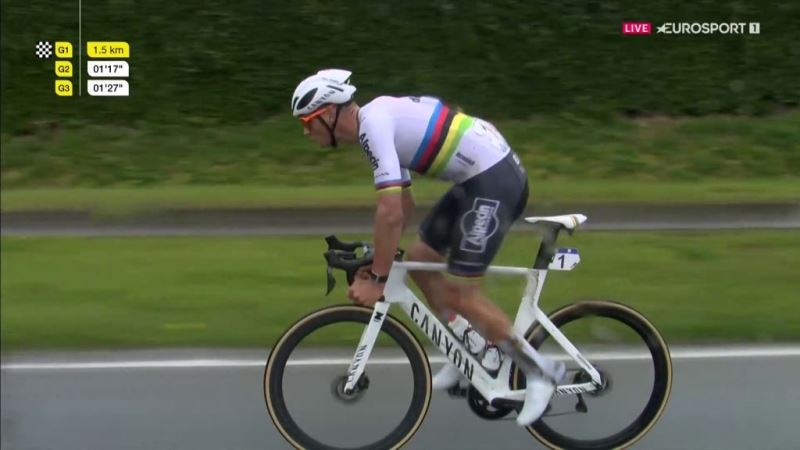 Матье ван дер Пул удержал просвет и в одиночку пересёк линию финиша, хотя его преимущество сократилось до 1 минуты 2 секунд.